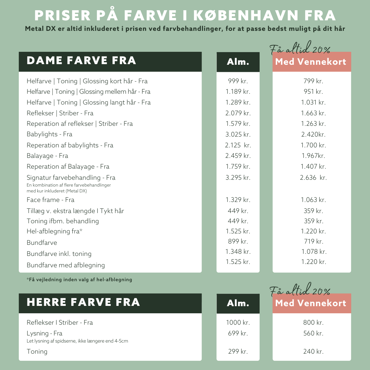 Metal DX er altid inkluderet i prisen ved farve, for at passe bedst muligt på dit hår og sikre den flotteste farvebehandling.