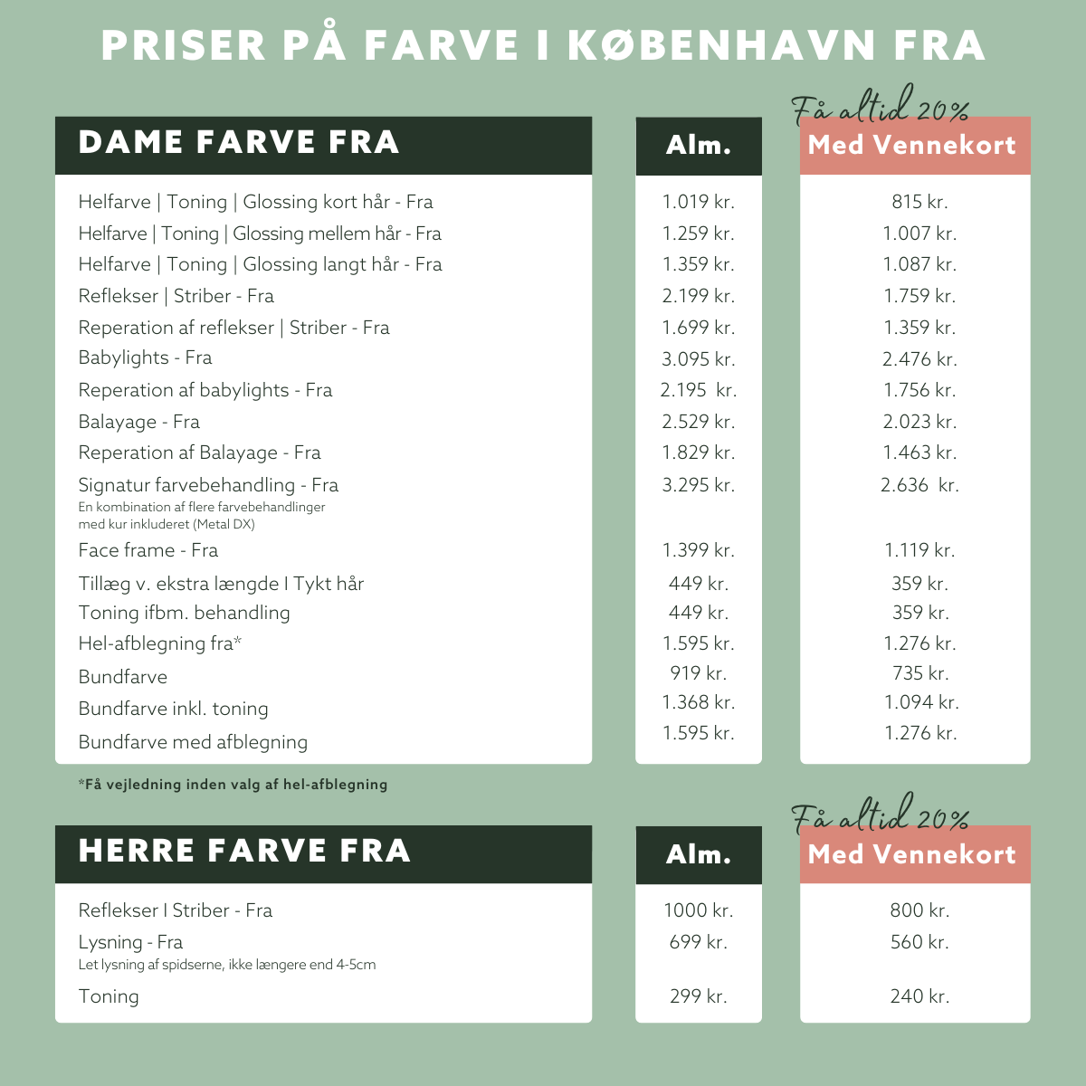 Det beskytter håret, gør farven mere holdbar og sikrer, at dit hår får den bedste pleje, når vi arbejder med kemi. Normalpris 330 kr., men hos os er det altid en del af prisen. Læs alt om vores farvebehandlinger og extensions HER