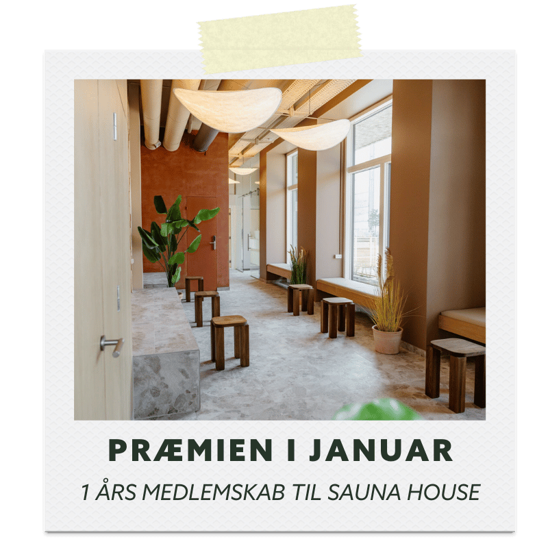 Præmien i januar: Et helt års medlemskab til Sauna House hvor ro, varme og velvære er i fokus. Her kan du trække stikket fra hverdagen og nyde saunaoplevelser der giver både krop og sind ny energi. Et frirum med tid til fordybelse afslapning og selvforkælelse.