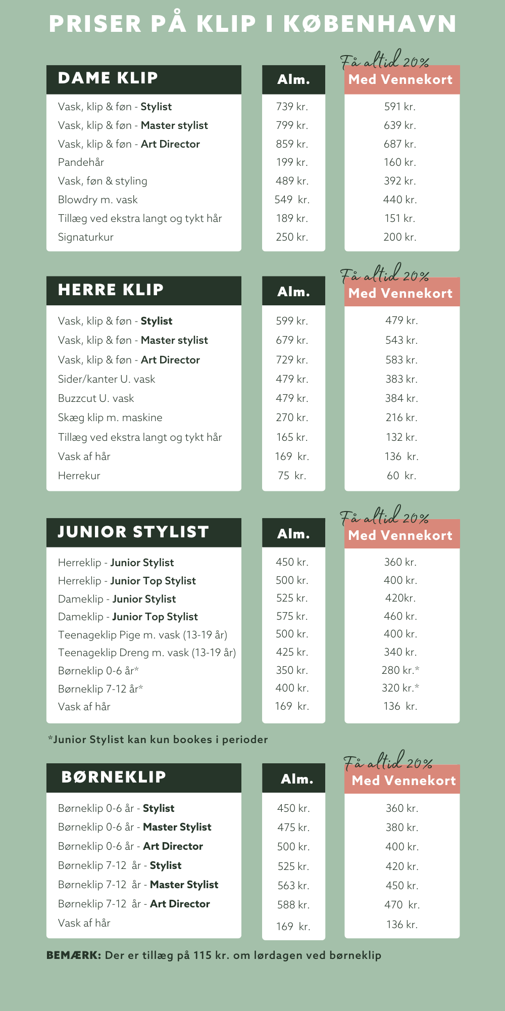 Du får altid 20% på alle behandlinger og produkter med RODEO Vennekort. På vores prisliste kan du se hvor meget du sparer ved hvert besøg med RODEO Vennekortet.